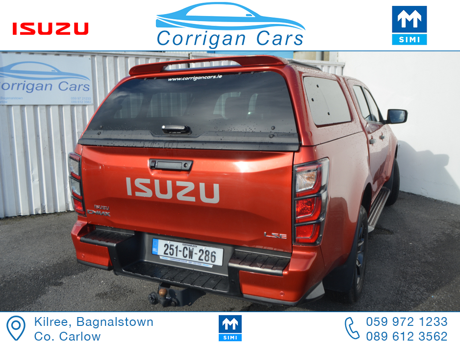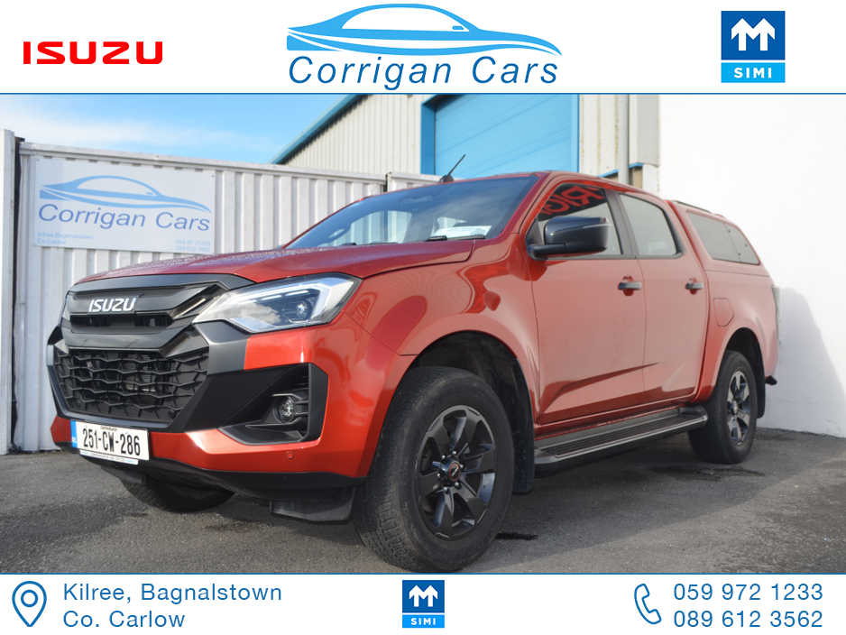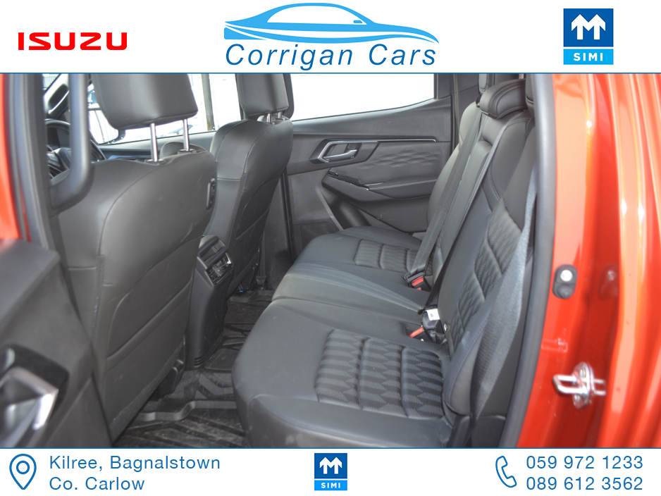 This jeep new retails at €62,500 so this jeep is a bargain at €53,995 including vat with only 8700kms and 4 years Isuzu Warranty. PRICE EXCLUDING VAT €43,898- New into Corrigancars is this Stunn ... ing LSE D-Max Presented in Namibu red, super spec on this jeep including Air Con, Bluetooth, Heated Leather Seats, Reverse Camera, Apple Carplay, Blind Spot monitoring, Lane Departure warning and lots lots more. Lo rate finance available in house on this jeep with a vat deposit and trade ins most welcome. All our commercial Vehicles are sold fully serviced, DOE Tested, History Checked and with a comprehensive warranty. For more details or to arrange a test drive please Willie on 086 8376909 landline 059 9721233 or email sales@corrigancars.ie Central Locking, Electric Windows, Airbag, Cruise Control, Fog Lamps, Privacy Glass, Centre Armrest, Multi-function steering wheel, Traction Control, Parking Sensors, Bluetooth, Isofix, Apple Car Play, Android Auto, Active Safety Braking / City Brake / Collision Alert, Stop/Start Button, External Devices Connectivity, Cup holders, Stability control, Air Conditioning, Air bags, Anti theft system, Bluetooth, Central locking, Cruise control, Electric windows, Fog lights, Multi Function Steering Wheel Controls, Parking Sensors, Power steering, Roof Rails, Traction control (ASR)