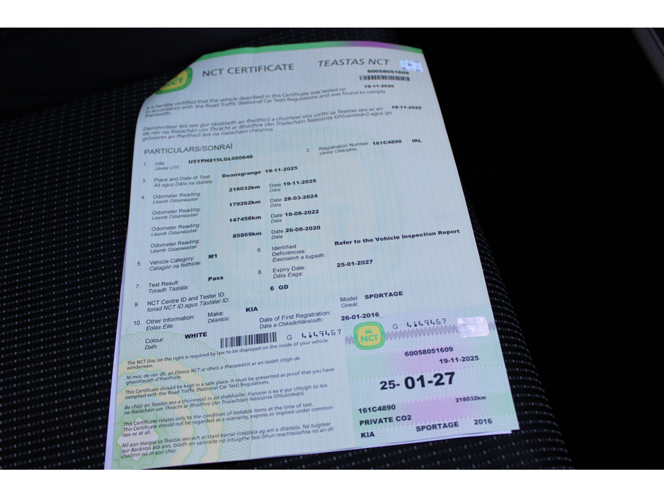 2 OWNER IRISH CAR FROM NEW THIS 1.7 DIESEL KIA SPORTAGE WITH FULL SERVICE HISTORY, NEW 1-27 NCT & 2 KEYS.
