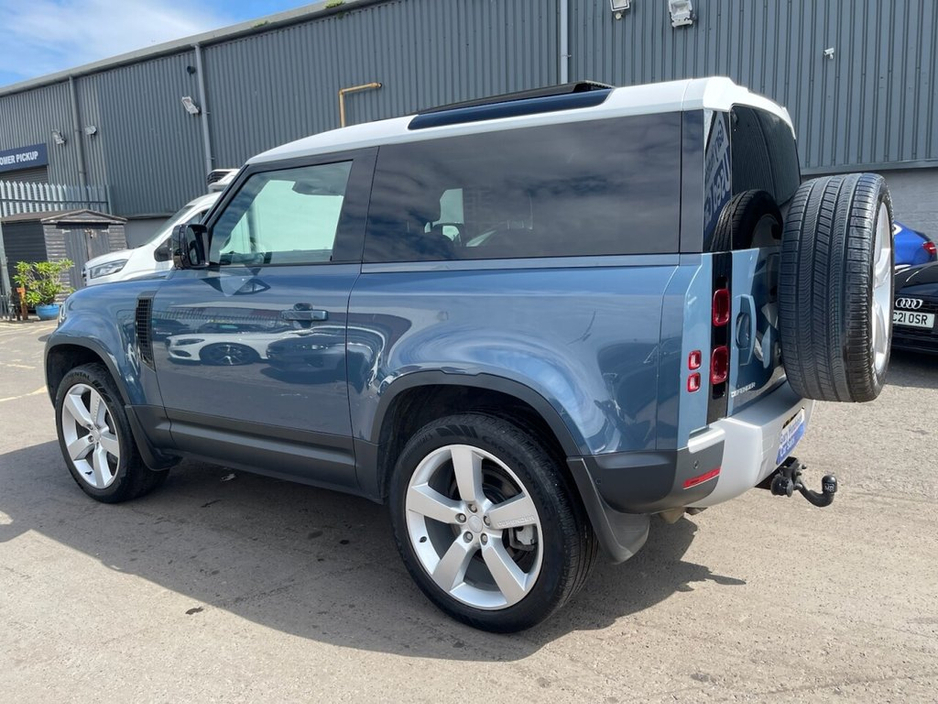 Fine Example Covered Only 31737 Miles Finished In Tasmin Blue With Exterior Black Pack Styling Huge Spec Including Original 22" Alloys , Sliding Panoramic Sunroof , Privacy Glass , Heated Steerin ... g Wheel , 360 Reversing Camera , Colour Screen Sat Nav , Side Steps , Hard Spare Wheel Cover , Rear Spoiler , Full Black Leather , Apple Car Play , Heated Seats , Meridian Sound System , Memory Seating , Tow Bar etc. Just Been Serviced With Land Rover With Extended Land Rover Warranty Until August 2026 . Huge Spec Low Mileage Example That Must Be Seen . Real Eye Catching Defender All Our Vehicles Come Fully Serviced With Parts & Labour Warranty , HPI Checked With Warranted Mileage , Fully Valeted And We Always Make Sure They Have Fuel Ready To Be Enjoyed ! We are Southern Ireland Export Specialists Offering a Hassle Free Buying Experience Including Convenient Location next to Belfast Central Railway Station which is serviced Nine times daily by Dublin Connection .