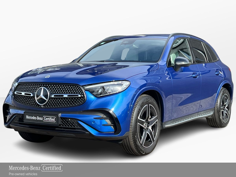 Finished in Spectral Blue metallic, this GLC 220d is paired with a refined neva grey and black ARTICO leather interior and AMG Line exterior and interior styling. Key customer highlights include 19-inch AMG alloy wheels, aluminium-look running boards, Night Package, ambient lighting with illuminated brand projection, heated sports seats with memory, MBUX Navigation Premium, wireless smartphone charging, EASY-PACK electric tailgate and the Parking Package with reversing camera.