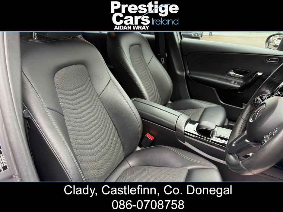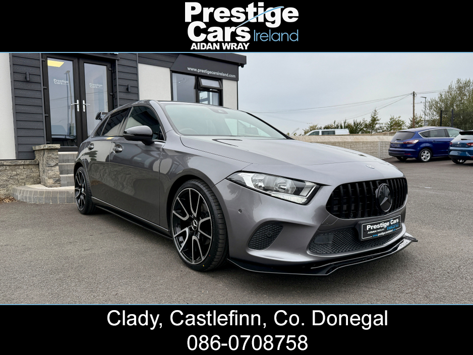 2019 (191) MERCEDES-BENZ A180 1.5 DIESEL SE EXECUTIVE AUTOMATIC 5DR HATCHBACK 115 BHP, **NIGHT EDITION STYLING**, 120,000 MOTORWAY MILES WITH A FULL MERCEDES MAIN DEALER SERVICE HISTORY, ONE COMPANY OWNER FROM NEW, GLOSS BLACK FRONT SPLITTER,BOOT SPOILER,AMG UP-GRADED GRILL, HALF LEATHER INTERIOR WITH WHITE STITCHING, HEATED SEATS, SEAT COMFORT PACK, MIRROR PACKAGE, BIG TOUCH SCREEN COLOUR DISPLAY SAT-NAV, ON-BOARD COMPUTER, MULTI FUNCTIONAL STEERING WHEEL, IPOD/USB CONNECTION, REAR USB PORTS, BLUETOOTH, APPLE CAR PLAY, MERCEDES-BENZ SOUND SYSTEM, ELECTRIC FOLDING DOOR MIRRORS, HEATED WINDSCREEN WASHER JETS, BRAND NEW 19" ALLOY WHEELS,OPTIONAL EXTRA @ 800 STG, LED FRONT AND REAR LIGHTS, DAYTIME LED RUNNING LIGHTS, LIGHT AND SIGHT PACK, REAR PRIVACY GLASS, ACTIVE PARK ASSIST WITH PARKTRONIC SYSTEM, FRONT AND REAR PARK SENSORS WITH PARK DISTANCE CONTROL, 180 DEGREE REAR VIEW CAMERA WITH PARKING GUIDELINES, FINISHED IN STUNNING MOUNTAIN GREY, AUTOMATIC GEARBOX WITH F1 PADDLES, 2 KEYS AVAILABLE AND ALL PAPERWORK PRESENT, SHOWROOM CONDITION INSIDE AND OUT. ANY INSPECTION WELCOME. EXCELLENT VALUE