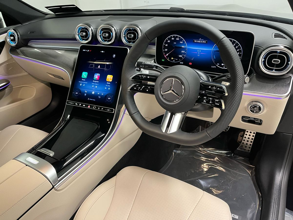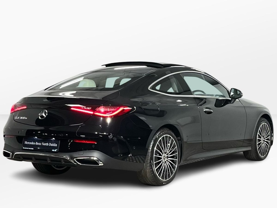 d advanced technology. The cabin offers premium comfort with heated front seats, AMG Line interior styling, a large central display, ambient lighting and a leather-clad dashboard. High-demand options include the panoramic sliding sunroof, AMG exterior styling, 19-inch AMG multi-spoke alloy wheels, Parking Package with rear-view camera, Blind Spot Monitoring, Active Lane Keeping Assist and the Memory Package for both front seats. This plug-in hybrid model benefits from MBUX Premium navigation, smartphone integration, wireless charging, multi-phase AC charging, Mode 3 charging cable, KEYLESS-GO and folding mirrors. Comfort suspension, level control, EV remote services, and advanced safety systems such as PRE-SAFE®, intersection monitoring and collision prevention ensure a refined and secure driving experience. Powered by the 2.0-litre M254 engine paired with hybrid technology and a smooth 9-speed automatic transmission, the CLE 300 e offers exceptional efficiency without compromising performance.
