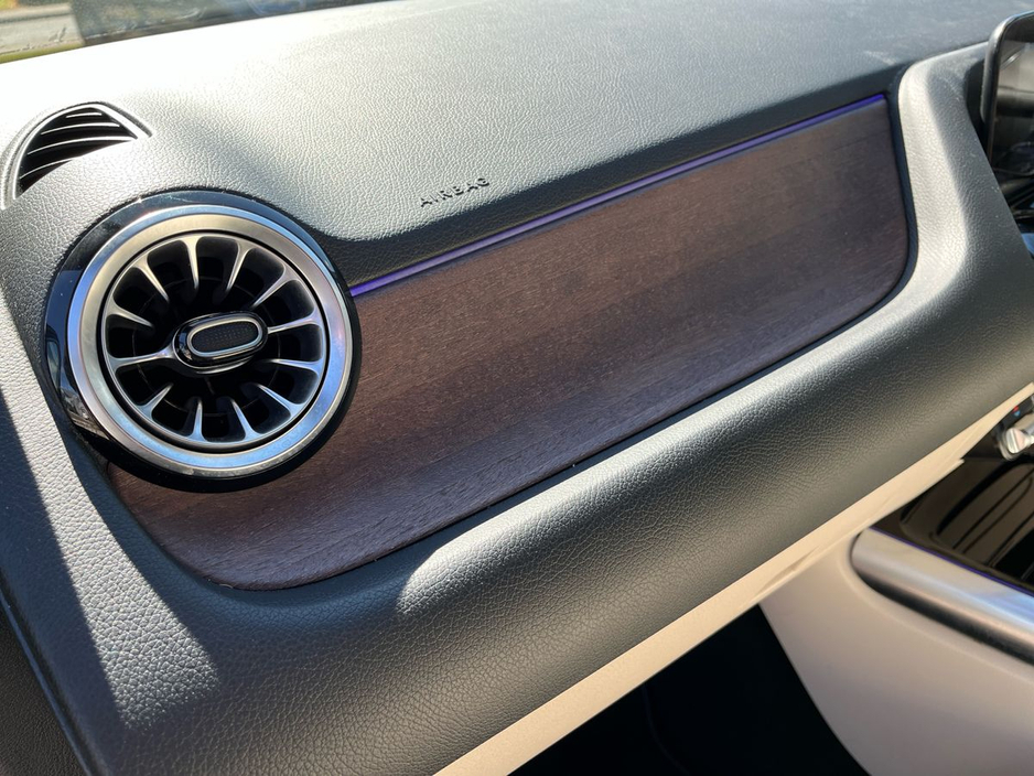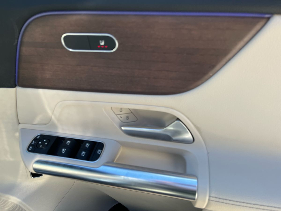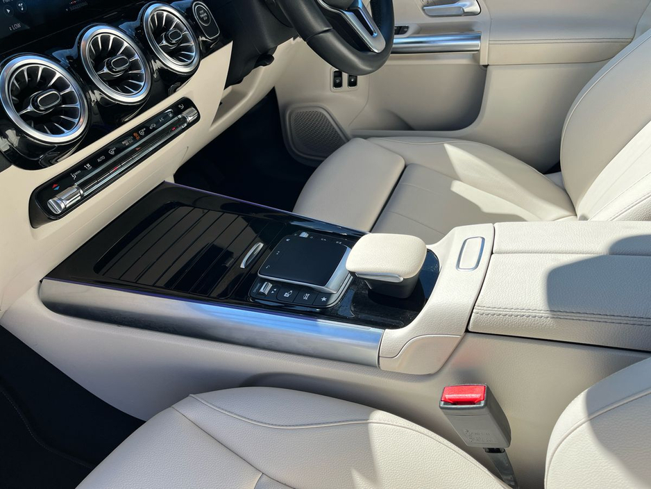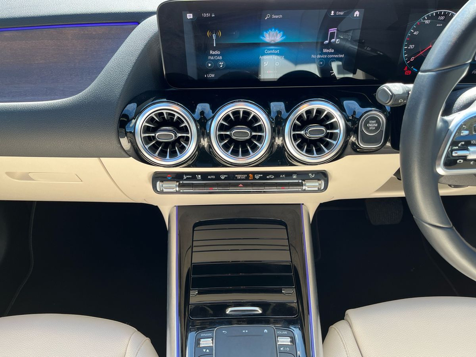 Finished in denim blue metallic paint, this GLA features a macchiato beige and black ARTICO leather interior with a black fabric roof liner and open-pore walnut wood trim. Desirable options include the EASY-PACK electric tailgate, heated front seats, ambient lighting, and the Advanced-Plus Package. The MBUX multimedia system with smartphone integration, digital instrument display, and touchpad interface ensures seamless connectivity and intuitive control. The 18-inch 5-twin-spoke alloy wheels and polished aluminium roof rails add a touch of elegance to this compact yet capable SUV.