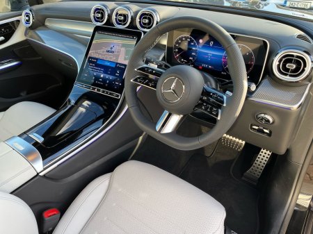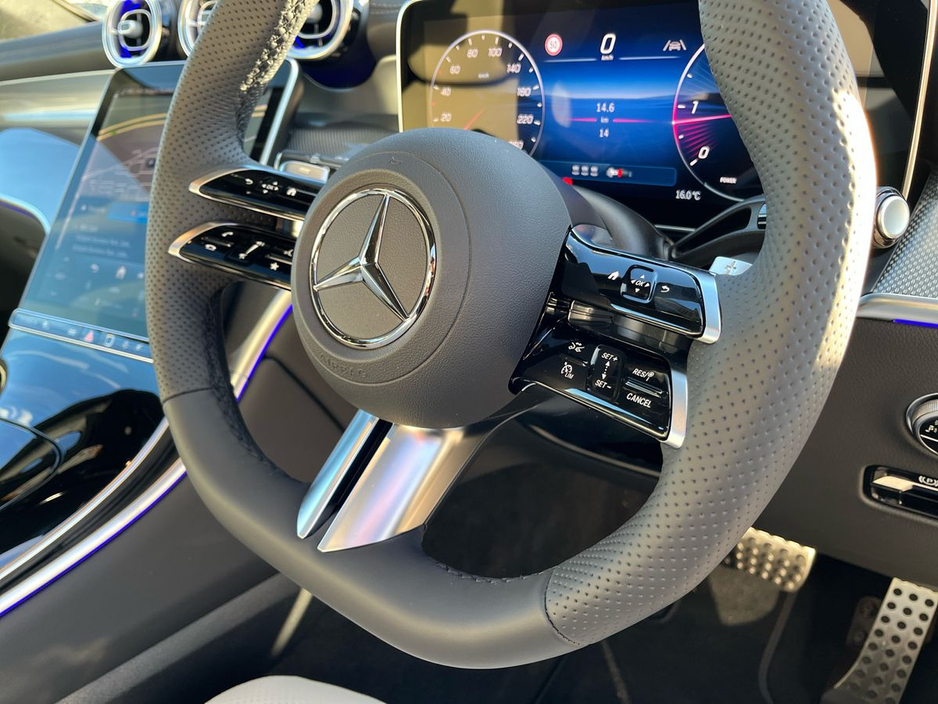 Finished in solid black with a refined ARTICO leather interior in neva grey and black, this GLC exudes sophistication. The AMG Line Plus styling, complemented by 19-inch AMG 5-spoke alloy wheels and aluminium-look running boards, enhances its sporty character. Inside, the panoramic sliding sunroof floods the cabin with light, while ambient lighting Plus, heated front seats, and a multifunction steering wheel in wood and nappa leather create a premium atmosphere. Advanced features such as the MBUX multimedia system, wireless charging, and smartphone integration ensure seamless connectivity and convenience.