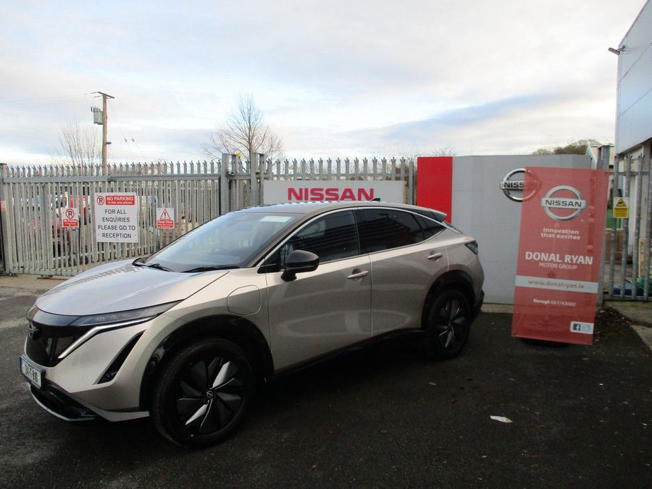 The amazing Nissan Ariya available to order now. 3 years manufacturer warranty with RAC roadside assistance and 8 years battery warranty. Up to 400 km range. Features include front & rear parking sens ... ors, around view monitor, intelligent cruise control, blind spot warning with intelligent blind spot intervention, intelligent emergency braking with pedestrian & cyclist detection & junction assist, intelligent forward collision warning, PROPILOT with Navilink, e-Pedal step, traffic jam pilot, heated front windscreen, intelligent lane intervention, lane keep assist, rear emergency braking and cross traffic alert, heat pump, 2 charging cables, 7.4KW onboard charger, leather heated steering wheel, Apple CarPlay/Android Auto, Nissan Connect Services and many, many more. All our quality used vehicles go through an extensive Vehicle Health Check, come fully serviced, tested, valeted and sanitised. Trade ins are welcome. Please call us for trade in valuation or to arrange a test drive. Price quoted after SEAI grant.