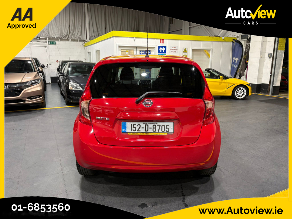 2015 Nissan Note SV E6 1.2 Manual, Low Mileage Cruise Control, Alloy Wheels, Air-Con, Stop/Start, Auto Lights, This Car Is In Immaculate Condition And Comes Fully Serviced, Fully Valeted And With 6 M ... onths Warranty, 1 & 2 Year Warranty Options Available, New NCT To 10/26, 12 Months AA Breakdown Assist Included, We Are A Family Run Dealership Since 2006, S.I.M.I & AA Approved Dealer, Finance Arranged, Call Us Today To Arrange A Test Drive!! Stock No. 7369 Central Locking, Immaculate condition, Electric Windows, Airbag, Alloy Wheels, Cruise Control, Electric Mirrors, Immobiliser, Privacy Glass, Automatic Lights, Multi-function steering wheel, Traction Control, Multiple Air Bags, Anti-Theft System, Trade in accepted, Bluetooth, Remote Central Locking, EBD, Folding rear seats, Isofix, Roadside assistance, Active Safety Braking / City Brake / Collision Alert, Stop/Start Button, External Devices Connectivity, Cup holders, Stability control