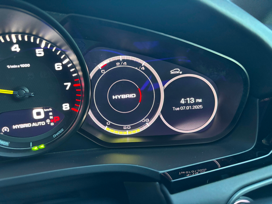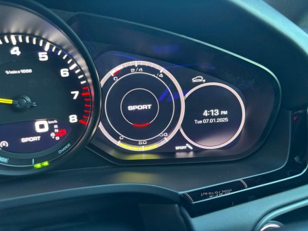 Standard features include 8-Speed Tiptronic S Automatic Transmission - 3.6 kW Onboard Charger - ParkAssist including reversing camera - Seat heating (front) - Emergency Assist (EA) - Navigation module for PCM - Door sill guards in aluminium with model designation - Sport Chrono Package - Apple CarPlay - Side window trims in Black (high-gloss) - Compass / Sport Chrono instrument dial in Crayon - Preparation for towbar system - VTS Security Package inc Alarm and Tracker (subject to subscription).