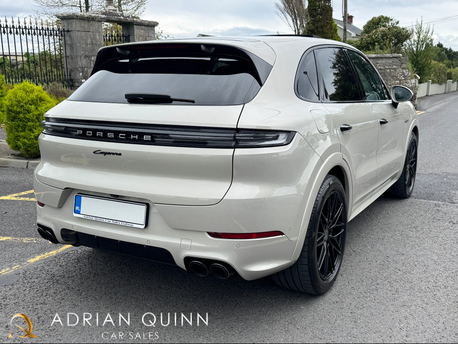 2025 (251) PORSCHE CAYENNE 3.0 V6 470 BHP AWD E-HYBRID AUTO...CASHMERE BEIGE METALLIC...FULL BLACK UPGRADED SMOOTH NAPPA LEATHER WITH BLACK TRIM AND BLACK CARPETS...INTERIOR TRIM IN DEEP BRUSHED ALUMI ... NIUM...21 INCH UPGRADED RS SPYDER DESIGN WHEELS IN SATIN BLACK WITH EXTENDED ARCHES IN EXTERIOR COLOUR...FULL PORSCHE SPORTS DESIGN KIT IN HIGH GLOSS BLACK...EXTERIOR MIRROR PAINTED IN HIGH GLOSS BLACK...PORSCHE LOGO PAINTED IN HIGH GLOSS BLACK AND MODEL DESIGNATION IN HIGH GLOSS BLACK...UPGRADED SPORTS TAILPIPES IN BLACK...PORSCHE ADAPTIVE AIR SUSPENSION...WINDOW TRIMS IN HIGH GLOSS BLACK...ROOF RAILS IN HIGH GLOSS BLACK ALUMINIUM....PORSCHE COMFORT ACCESS SYSTEM...FULL PANORAMIC GLASS SUNROOF...SOFT CLOSE DOORS...UPGRADED BOSE SURROUND SOUND SYSTEM...REAR PRIVACY GLASS...HD MATRIX DESIGN HEADLIGHTS....TINTED REAR LED LIGHTS WITH ANIMATION...POWER STEERING PLUS...PORSCHE ACC ADPATIVE CRUISE CONTROL...LANE CHANGE ASSIST...LANE KEEP ASSIST...BLIND SPOT MONITORING...TRAFFIC SIGN RECOGNITION...DOOR SILL GAURDS IN BRUSHED ALUMINIUM...UPGRADED AIR QUALITY SYSTEM...SPORTS CHRONO PACK WITH COMPASS DIAL IN BLACK...AMBIENT INTERIOR LIGHTING PACK...HEATED SPORTS STEERING WHEEL...PORSCHE ADAPTIVE AIR SUSPENSION...PARK ASSIST INC SURROUND VIEW CAMERAS...UPGRADED 14 WAY POWER COMFORT FRONT SPORTS SEATS WITH MEMORY PACK...HEATED FRONT AND REAR SEATS...DUAL ZONE AUTO CLIMATE CONTROL FRONT AND BACK...TWIN USB INTERFACE IN REAR...PORSCHE CREST EMBOSSED HEADRESTS FRONT...PORSCHE LOGO PUDDLE LIGHT PROJECTORS UNDER DOOR...SPORTS PEDAL PADS IN STAINLESS STEEL...PORSCHE COMMUNICATION MANAGEMENT...PCM INC ONLINE NAVIGATION SYSTEM...BLUETOOTH PHONE PREP...APPS INTERFACE...PORSCHE CONNECT PLUS...APPLE CAR PLAY...DUAL USB PORT...DAB DIGITAL RADIO...AUTO BOOTLID...KEYLESS GO...POWER CABLE FOR HOUSEHOLD OULET...11 KW AC ON BOARD CHARGER...FINANCE ARRANGED...PCP AVAILABLE...COST €144k NEW...