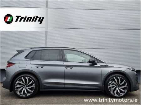 TRINITY SKODA ARE EXCITED TO OFFER THIS STUNNING ELROQ 85 SPORTLINE FINISHED IN GRAPHITE GREY METALLIC WITH BLACK SUEDIA LEATHERETTE UPHOLSTERY. THIS CAR COMES WITH A WLTP RANGE OF 571KM AND VERY LOW RUNNING COSTS