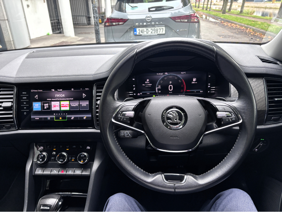 High Spec Kodiaq Petrol Auto with 7 Seats, Full Black Leather, Heated Seats, Heated Steering Wheel, 19" Alloy Wheels, Front and Rear Parking Sensors, ReversingCamera, Wireless Apple Carplay/Android Au ... to, Wireless Phone Charger, Bluetooth with Music Streaming, 3 Zone Climate Control, Adaptive Cruise Control, Keyless Entry, LED Headlights, Roofrails, Privacy Glass, Picnic Tables, and Auto Headlights and Wipers. NCT Passed Till 01/26. Road Tax €400py. Finance is available on this car at competitive rates, Please ask our sales team for a quotation. Ken Lawford Motors Est. 1991.
