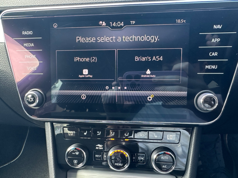 Air conditioning, Climate control, Dual zone climate control, Armrest, Keyless entry, Electric side mirrors, Electric windows, Electric handbrake, Heated seats, Lumbar support, Multi-function steering wheel, Rain sensor, Spare tyre, Android Auto, Apple CarPlay, Bluetooth, MP3 compatible, 12v power outlet, Radio, Touch screen display, USB connection (front), Wifi, Adaptive cruise control, Cruise control, Hill hold assist, Rear parking sensors, Remote boot release, Speed limiter, Start-stop system, Voice control, Alloy wheels, Leather steering wheel, Adaptive headlights, Auto lights (dusk sensor), Daytime running lights, LED headlights, ABS, Anti collision system, Emergency brake assist, Central locking, Remote central locking, Driver-side airbag, Immobilizer, Isofix, Tyre pressure monitor, Passenger-side airbag, Seat belt warning, Side airbag, Stability control, Traction control