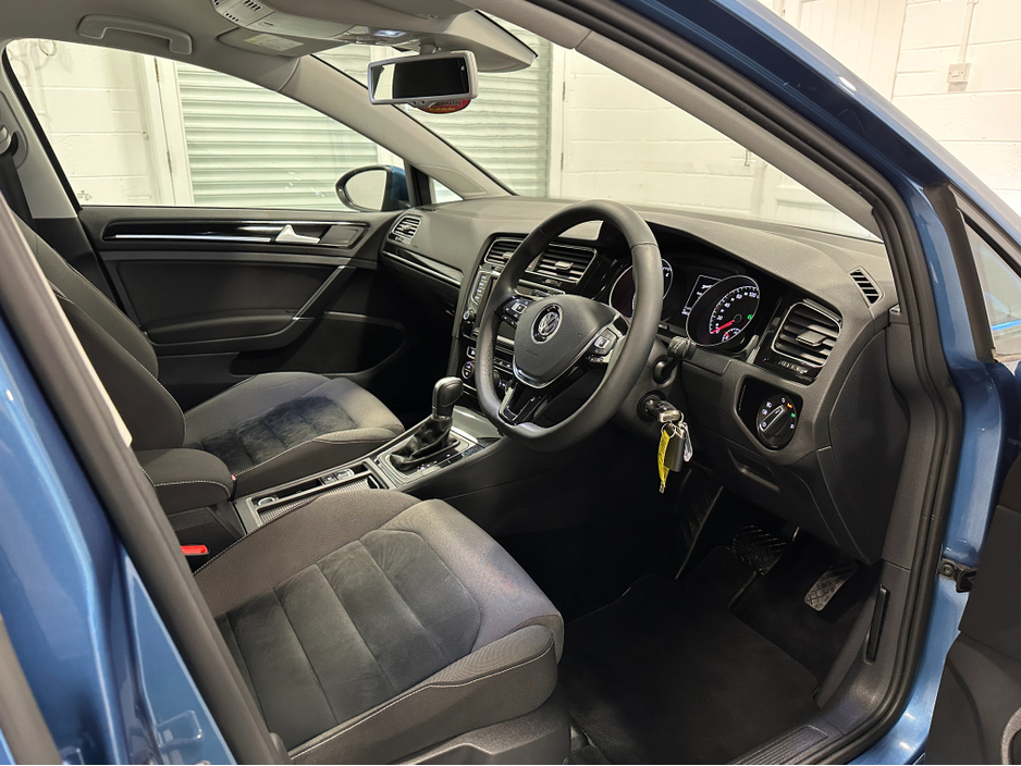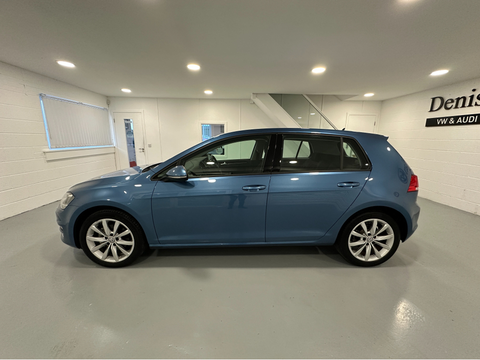 WWW.DENISDARCYCARS.IE VW/AUDI SPECIALISTS. 142 VOLKSWAGEN GOLF 1.4TSI HIGHLINE DSG IN PACIFIC BLUE, SPEC INCLUDES, 17'' ALLOYS, REMOTE LOCKING, REVERSING CAMERA, XENON LIGHTS, AUTO LIGHTS/WIPERS, ARMR ... EST, MULTIFUNCTION LEATHER STEERING WITH PADDLE SHIFT, ADAPTIVE CRUISE CONTROL,CLIMATE AC, BLUETOOTH MEDIA, LANE ASSIST, AUTO HOLD, KEYLESS, AMBIENT INTERIOR LIGHTING, TWO KEYS, SERVICE HISTORY, BLACK PIANO DASH INLAYS. COMES SERVICED AND NCT'D. WE ARE LOCATED JUST OFF THE M3 MOTORWAY EXIT 9, 20 MINS FROM DUBLIN..