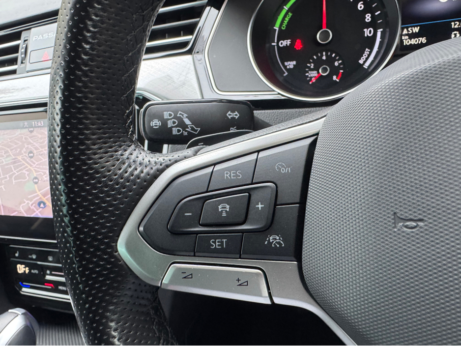 Volkswagen Hybrid technology, great fuel economy, front and rear assist, 3 zone climate control, daytime running LED headlights, heated full leather seating, digital cockpit, apple car play, android auto, chrome roof rails, folding exterior door mirrors, multi phone bluetooth, multi function steering wheel, cruise control, automatic transmission, rear privacy/sun protect glass, lumbar adjustment. upgraded GTE alloys.
