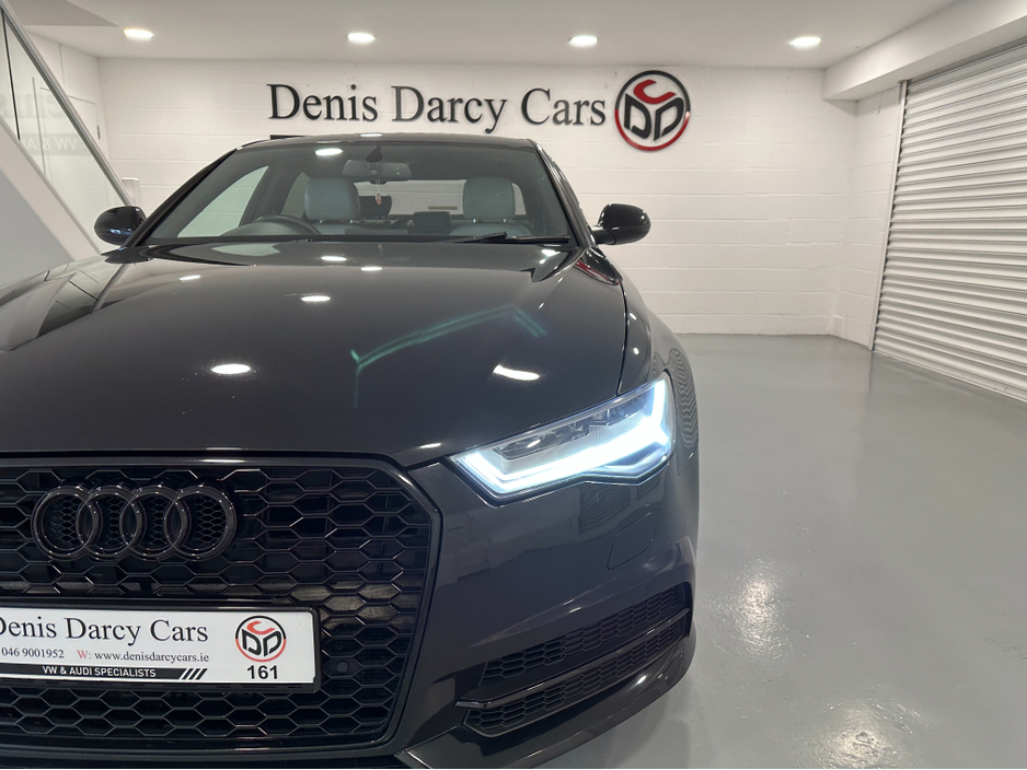 WWW.DENISDARCYCARS.IE VW/AUDI SPECIALISTS. 161 AUDI A6 S LINE BLACK EDITION 190BHP S TRONIC IN MYTHOS BLACK. SPEC INCLUDES, 20'' RS ALLOYS, LED LIGHTS, PRIVACY GLASS, HEADLIGHT WASHERS, PARKING SENSORS, AUTO LIGHTS/WIPERS, HEATED SEATS, MULTIFUNCTION LEATHER S LINE SEATS, CRUISE CONTROL, SAT NAV, CLIMATE AC 4 ZONE, ARMREST, KEYLESS START, BLACK PIANO DASH INLAYS, TWO KEYS, PADDLE SHIFT, SERVICE HISTORY, TIMING BELT AND WATERPUMP DONE. WE ARE LOCATED JUST OFF THE M3 MOTORWAY EXIT 9, 20 MINS FROM DUBLIN. Central Locking, Electric Windows, Airbag, Cruise Control, Privacy Glass, Centre Armrest, Multi-function steering wheel, Satellite Navigation, Traction Control, Anti-Theft System, Parking Sensors, Bluetooth, EBD, Isofix, Active Safety Braking / City Brake / Collision Alert, Stop/Start Button, External Devices Connectivity, Cup holders, Remote boot/hatch/rear door release, Stability control