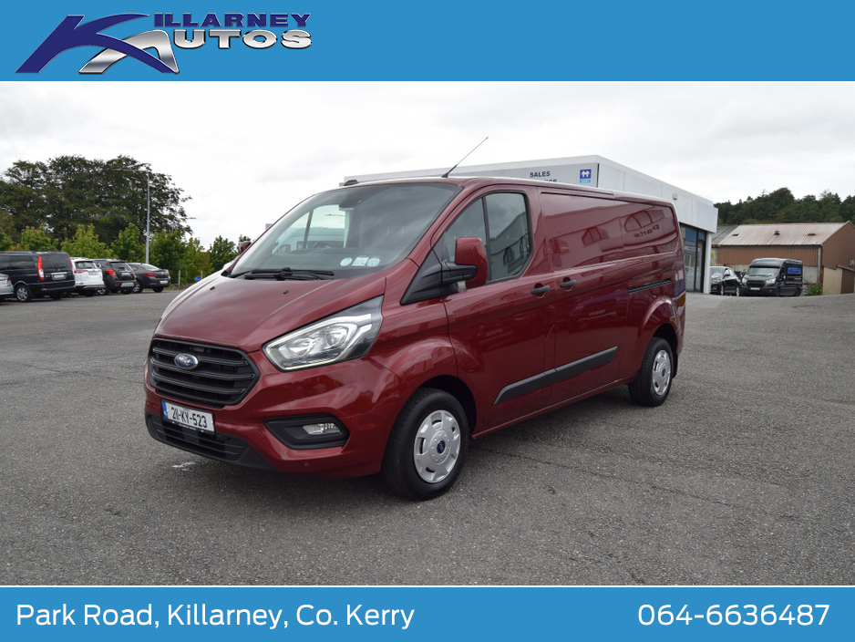 One Owner Ford Transit Custom Trend LWB 170Ps. Tidy van, well maintained. €10950 plus vat. €13468 inc vat. Timing belt done 12 months ago. Trade ins taken, finance can be arranged. To arrange a test drive or viewing appointment, please call KEVIN DONNELLY on 064-6636487 or email kevin@killarneyautos.ie Air bags, Bluetooth, Central locking, Electric windows, Electronic brakeforce distribution (EBD), Fog lights, Multi Function Steering Wheel Controls, Parking Sensors, Power steering, Traction control (ASR)