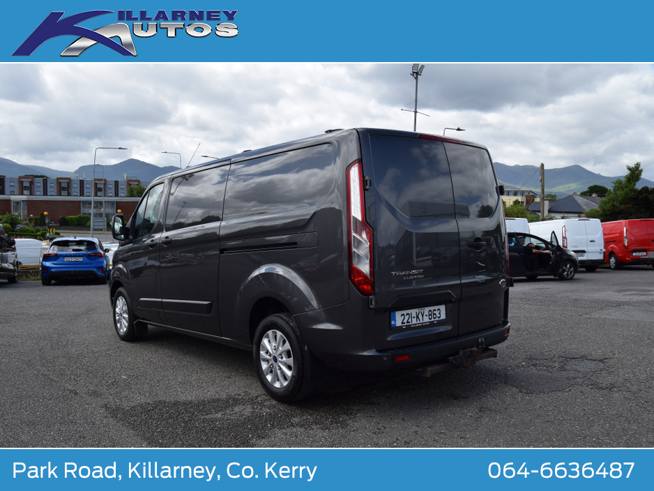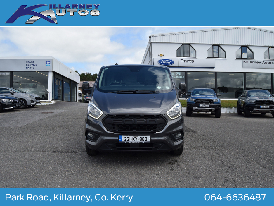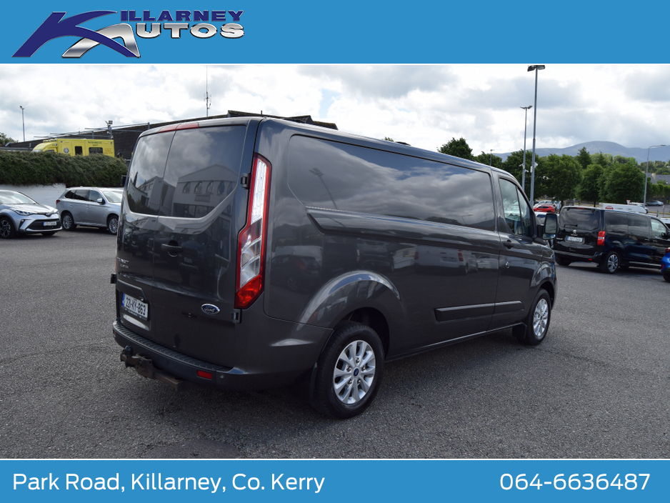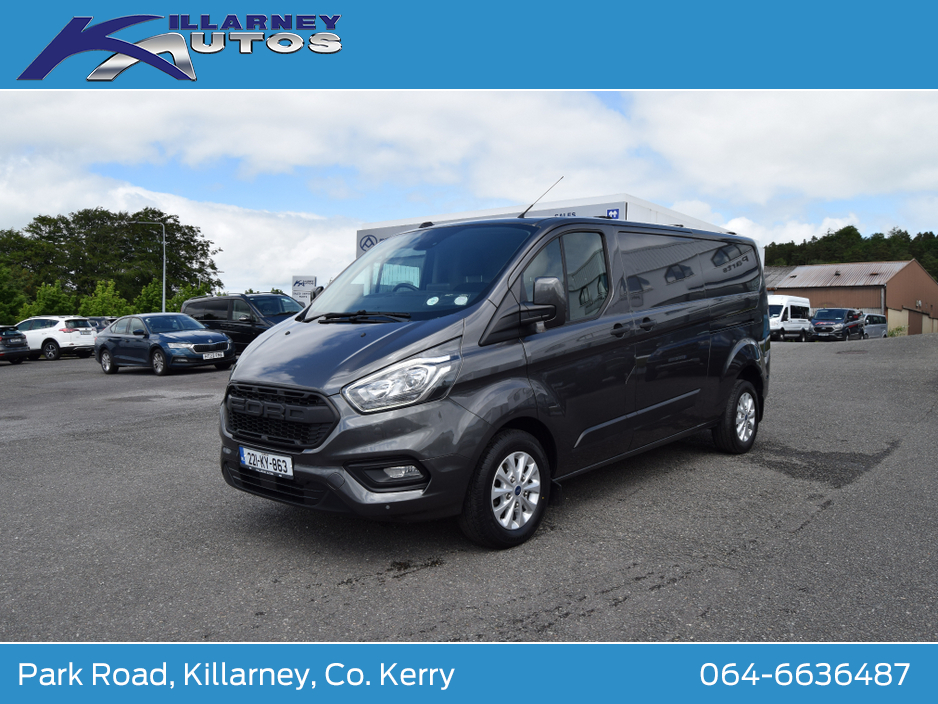 Immaculate One owner Ford Transit Custom Trend LWB 170PS manual 6 speed. Price is €25950 plus 23% vat. €31918 including vat. Vat docket supplied. High spec van with air con. Trade ins accepted. Finance arranged. To arrange a test drive or viewing appointment, please call KEVIN DONNELLY on 064-6636487 or email kevin@killarneyautos.ie Air bags, Bluetooth, Central locking, Electric windows, Electronic brakeforce distribution (EBD), Fog lights, Multi Function Steering Wheel Controls, Parking Sensors, Power steering, Traction control (ASR)