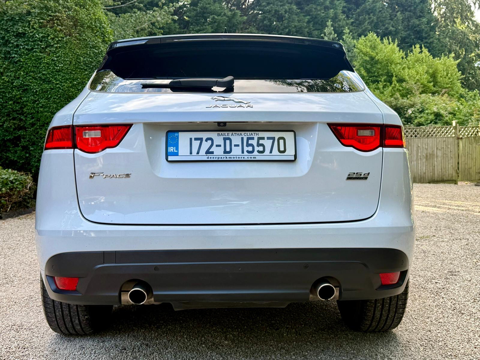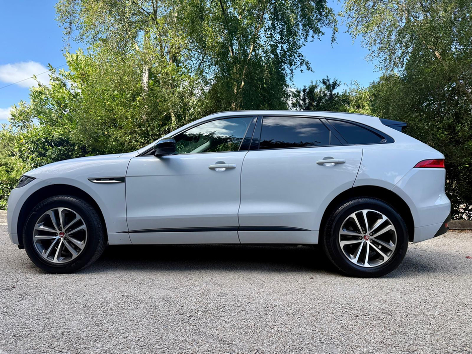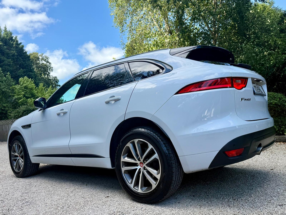 In excellent condition throughout, the superb R Sport specification on our Yulong White, AA Approved Jaguar F Pace All Wheel Drive 240 ps includes 19 inch Alloy Wheel Upgrade, Meridian Sound Upgrade, Reversing Camera, Electric Tailgate, R Sport Half-Leather Interior, Heated Seats, Electric Tow Bar, Xenon Headlights, Cruise Control with Collision Alerts, Lane Assist, Widescreen Sat Nav, Piano Wood Trim, Electric Folding Mirrors, Paddle Shift, Digital Climate Control, Bluetooth Audio Music Streaming and Phone Integration, Music Storage Jukebox,,USB Connection, Roof Rails and more.
