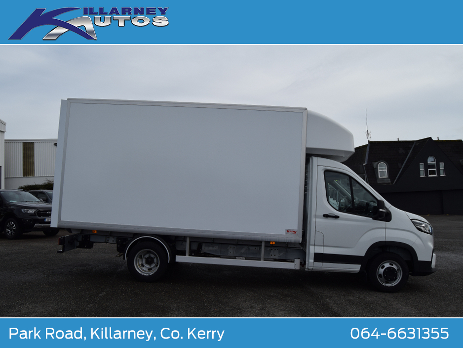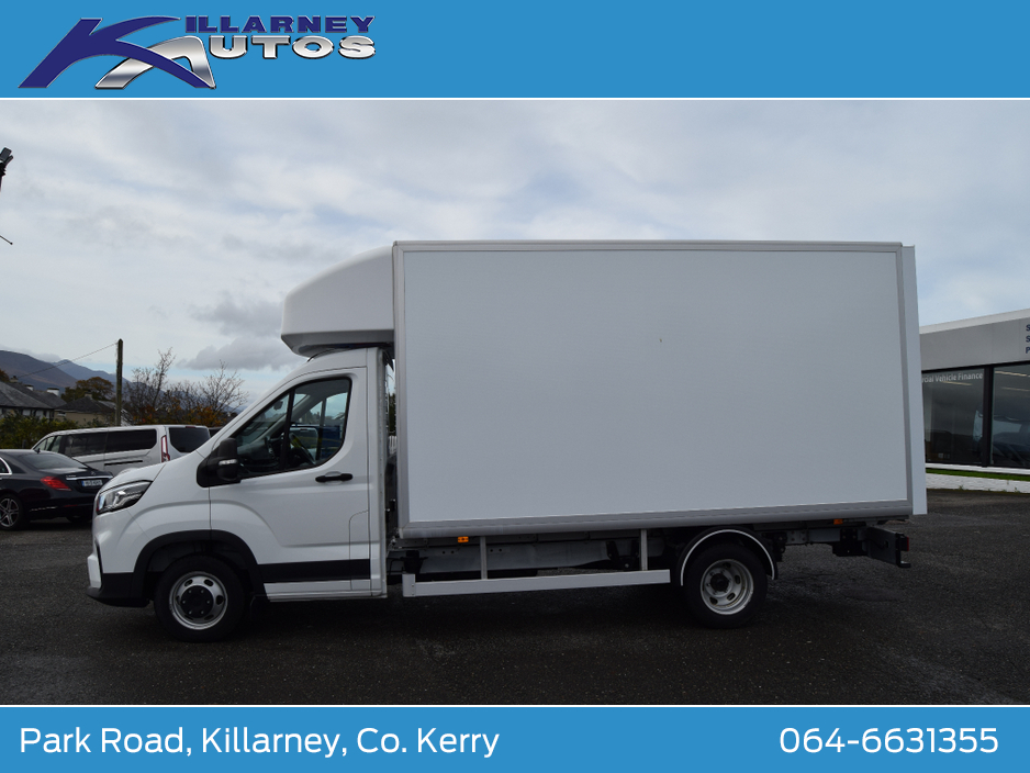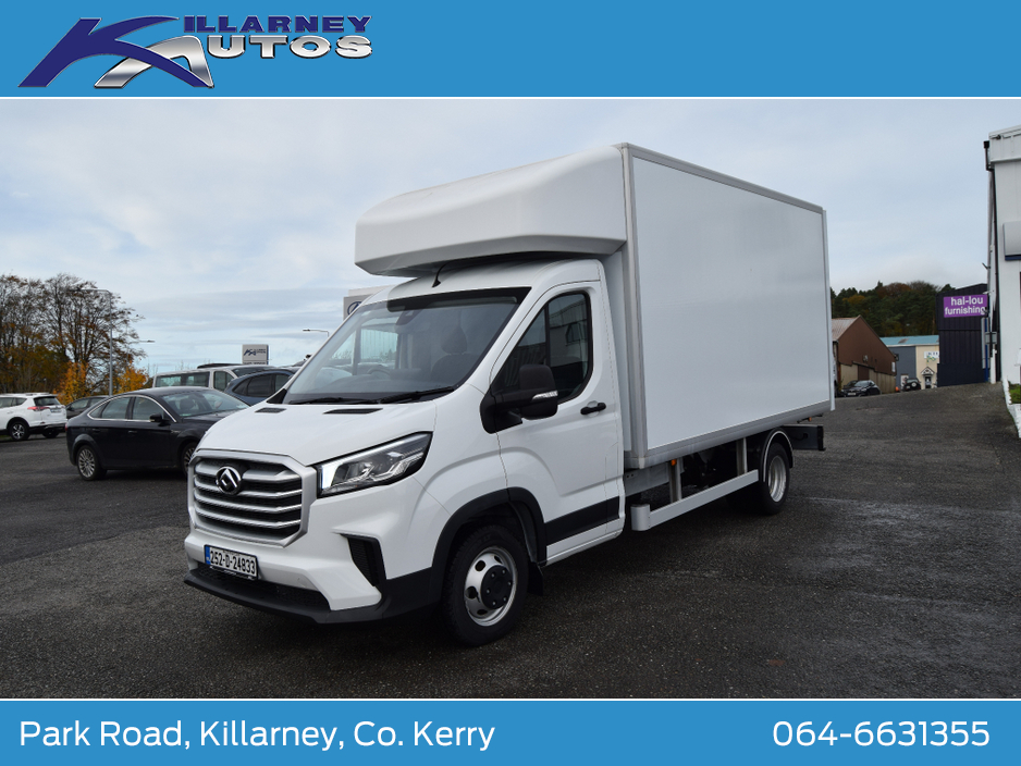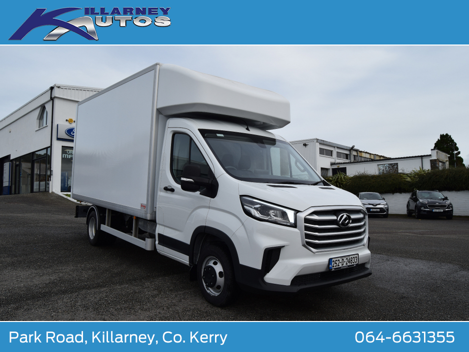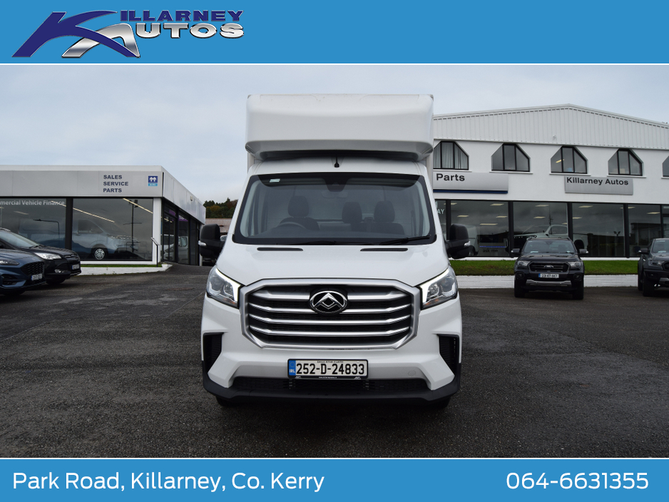 252 Reg Demo Model Maxus Deliver 9 , 3500kg GVW Luton Body Single Rear Wheel 2.0TDi 150BHP. Manufacturer warranty 5 years limited to 200,000lms max. Internal Dimensions, length 4090mm, height 2100mm, width 1950mm. Trade ins taken, finance arranged. To arrange a test drive or viewing appointment, please call our sales team on 064-6631355 or email sales@killarneyautos.ie ABS, Air Conditioning, Air bags, Bluetooth, Central locking, Cruise control, Day Time Driving Lights, Door- Roller shutter door, Double Rear Wheels, Electric windows, Immobiliser, Multi Function Steering Wheel Controls, Power steering, Remote Control Central Locking, Seat belts, Spare keys, Warranty