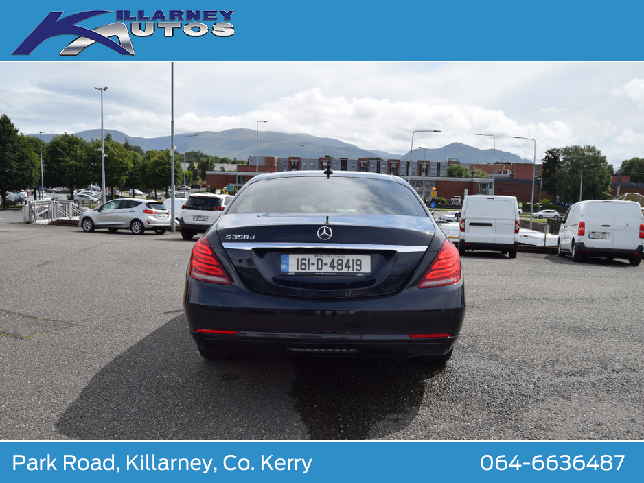 Mercedes Benz S-Class LWB Auto 3.0 D. Immaculate car. Trade ins taken. To discuss further or arrange a test drive, please call KEVIN DONNELLY on 064-6636487 or email kevin@killarneyautos.ie Central Locking, Electric Windows, Airbag, Centre Armrest, Multi-function steering wheel, Satellite Navigation, Traction Control, Metallic Paint, Anti-Theft System, Parking Sensors, Bluetooth, EBD, Isofix, Active Safety Braking / City Brake / Collision Alert, Stop/Start Button, Touch Screen Media Control, External Devices Connectivity, Cup holders, Remote boot/hatch/rear door release, Stability control