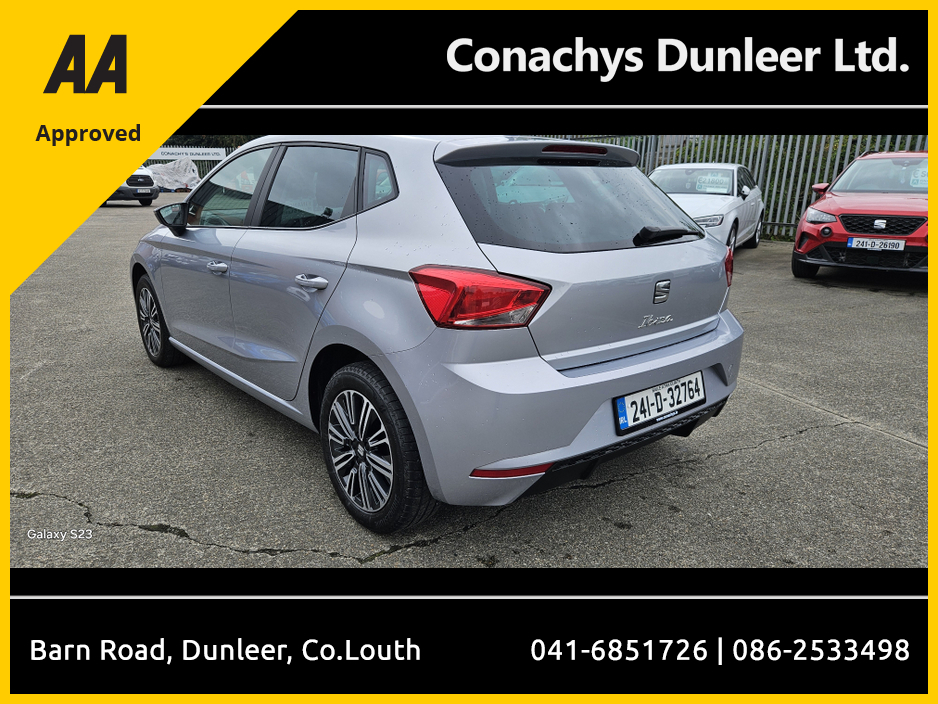 A nice 2024 SEAT Ibiza 1.0 SE , One owner car, Comes fully serviced and valeted . Finance arranged . Please call 0862533498 for more details. Central Locking, Electric Windows, Airbag, Cruise Control, Electric Mirrors, Fog Lamps, Privacy Glass, Automatic Lights, Multi-function steering wheel, Traction Control, Anti-Theft System, Parking Sensors, Bluetooth, Folding rear seats, Isofix, Finance Checked, Apple Car Play, Android Auto, Active Safety Braking / City Brake / Collision Alert, Stop/Start Button, 2 Keys, External Devices Connectivity, Cup holders, Stability control