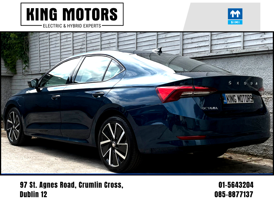 ***FINANCE PACKAGES AVAILABLE*** Rare plug-in hybrid SE Technology Octavia hatchback. One owner example with fully documented history and cartel check. Comes fully valeted, serviced and warrantied, and with a full cartell history check to ensure your peace of mind. ALL PRICES QUOTED ARE INCLUSIVE OF ANY APPLICABLE VRT. FINANCE OPTIONS AVAILABLE, INCLUDING OPTIONS FOR THOSE WITH POOR, OR NO CREDIT HISTORY. APPLY AT kingmotors.ie/finance.php SIMI Members. Over 20 years motor trade experience. Open Mon-Fri 10-5.30, Sat 10-2.00 pm Central Locking, Electric Windows, Airbag, Fog Lamps, Centre Armrest, Multi-function steering wheel, Satellite Navigation, Traction Control, Anti-Theft System, Parking Sensors, Bluetooth, EBD, Isofix, Active Safety Braking / City Brake / Collision Alert, Stop/Start Button, Touch Screen Media Control, External Devices Connectivity, Cup holders, Remote boot/hatch/rear door release, Stability control