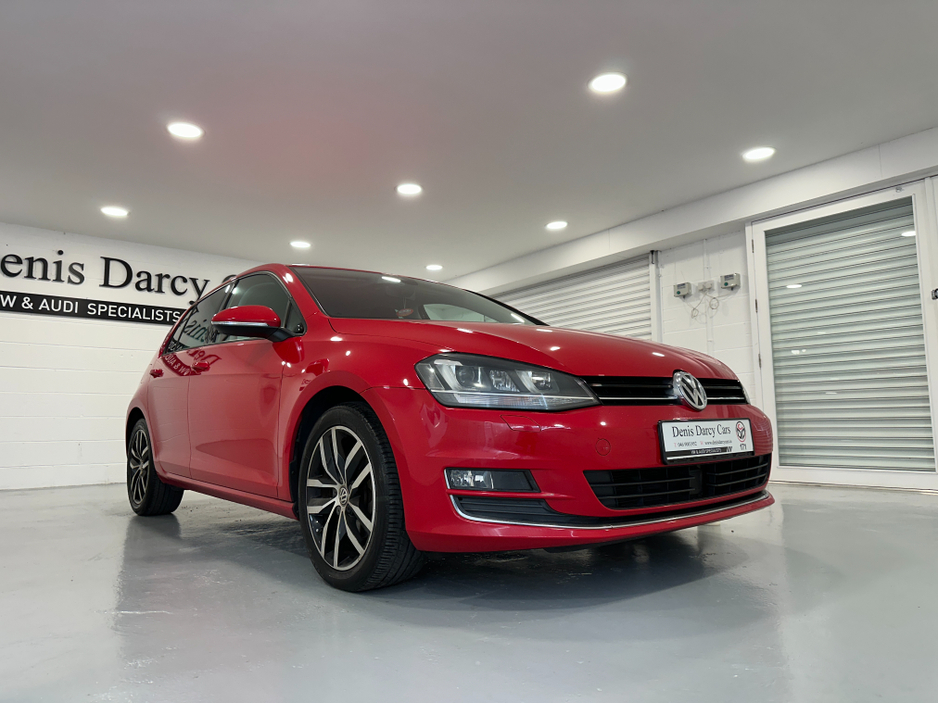 WWW.DENISDARCYCARS.IE VW/AUDI SPECIALISTS. 171 VOLKSWAGEN GOLF 1.4TSI HIGHLINE DSG IN TORNADO RED, SPEC INCLUDES, 17'' ALLOYS, REMOTE LOCKING, REVERSING CAMERA, CAR PLAY ANDROID AUTO MIRROR LINK, XENON LIGHTS, AUTO LIGHTS/WIPERS, ARMREST, MULTIFUNCTION LEATHER STEERING WITH PADDLE SHIFT, ADAPTIVE CRUISE CONTROL,CLIMATE AC, BLUETOOTH MEDIA, AUTO HOLD, AMBIENT INTERIOR LIGHTING, TWO KEYS, SERVICE HISTORY, BLACK PIANO DASH INLAYS. COMES SERVICED AND NCT'D. WE ARE LOCATED JUST OFF THE M3 MOTORWAY EXIT 9, 20 MINS FROM DUBLIN..