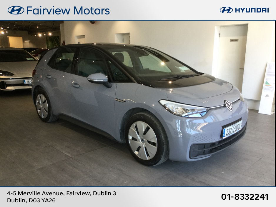 Now In Stock, iD3 Life Pro 58kW Finished In Steel Grey. Great Spec With Range Of Up To 420 Km On A Single Charge. Call Our Sales Team Now On 01 8332241 For More Information. Finance Available.