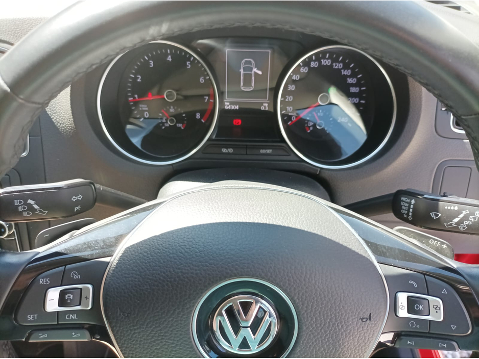 Immaculate low mileage Volkswagen Polo 1.2 high line automatic only 64,304 km this car is spotless throughout unmarked inside or outside and underbody is spotless lovely car to drive very economical and reliable finished in Guards Red with contrasting charcoal leather and suede interior loaded with extras including climate control air-conditioning remote central locking 4 electric windows privacy glass, cruise control automatic headlights, sports alloy wheels front fogs electric folding mirrors reverse camera large touch screen multi media system, heated seats, Just fully serviced 2 years nct one year road tax. Any inspection welcome first to see will buy.