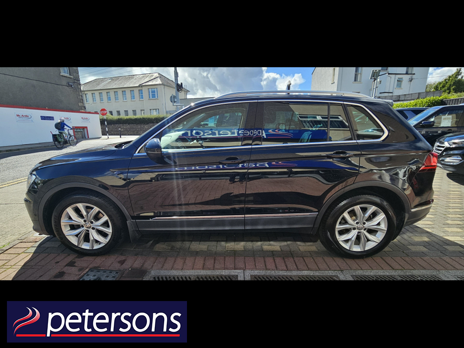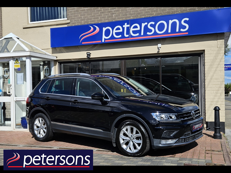 VOLKSWAGEN TIGUAN HIGHLINE 2.0 TDI AUTOMATIC, PANORAMIC ROOF, BLACK WITH BLACK INTERIOR, HEATED SEATS, CRUISE CONTROL, DUAL ZONE CLIMATE CONTROL, SELECTABLE DRIVING MODES, TOUCHSCREEN MEDIA, APPLE CARPLAY, ANDROID AUTO, MIRROR LINK, SATNAV, BLUETOOTH, USB AND AUX CONNECTIONS, MULTIFUNCTION STEERING WHEEL, STOP/STRT BUTTON, ELECTRONIC HANDBRAKE, 360 DEGREE PARKING SENSORS, REVERSE CAMERA, AUTOMATIC LIGHTS, DAYTIME LIGHTS, ELECTRIC WINDOWS AND MIRRORS, PRIVACY GLASS, POWER FOLDING MIRRORS, HEATED MIRRORS, MOTORISED BOOT, LUGGAGE COVER, SEAT BACKTABLES, ROOF RAILS, REMOTE CENTRAL LOCKING, ALLOY WHEELS.