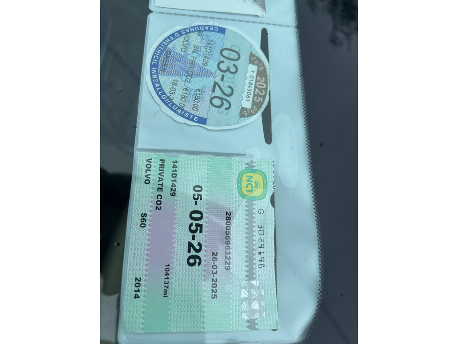 Nice volvo S60 2.0ltr diesel. Nct tested. All good tyres, just serviced. Leather interior , climate, cruise, remote locking, 2 keys, alloys, led lights,multifunction steering wheel. Central Locking, Electric Windows, Airbag, Centre Armrest, Multi-function steering wheel, Traction Control, Metallic Paint, Anti-Theft System, Parking Sensors, Bluetooth, EBD, Isofix, Active Safety Braking / City Brake / Collision Alert, Stop/Start Button, External Devices Connectivity, Cup holders, Remote boot/hatch/rear door release, Stability control